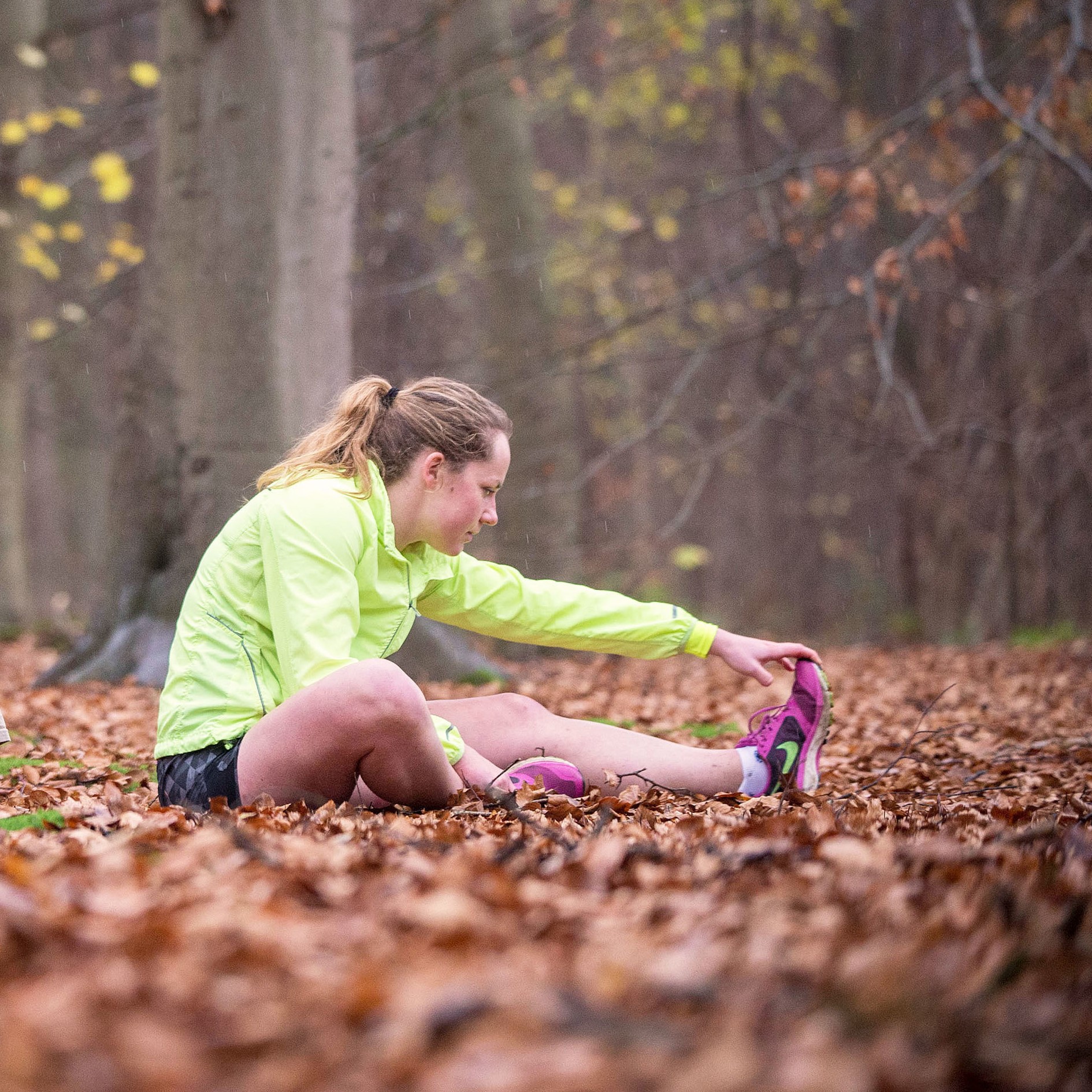 At the end of the penultimate day of the event, two runners stretch off near Brussels in Belgium. A group of Soldiers from the NATO Allied Rapid Reaction Corps (ARRC)’s Support Battalion completed a continuous 4,000 km run (equating to 100 marathons), which raised funds for service charities when they crossed the finish line in Supreme Headquarters Allied Powers Europe (SHAPE) in Mons, Belgium on Dec. 9, 2015. The runners were met by Supreme Allied Commander Europe (SACEUR) Gen. Phil Breedlove and Command Senior Enlisted Leader (CSEL) CSM Davor Petek, who presented them with SACEUR and CSEL commemorative coins in honor of the impressive physical feat they had achieved.